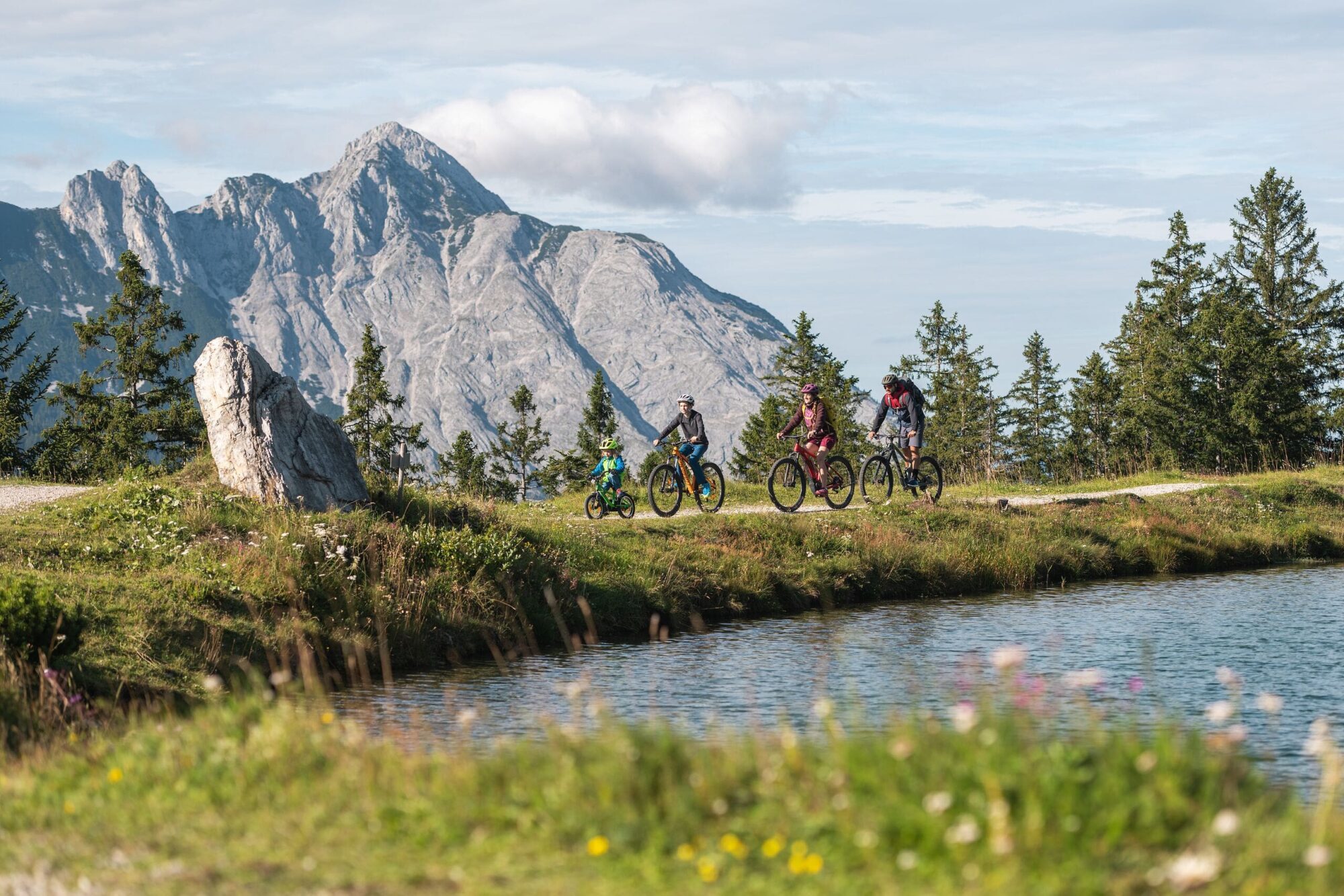 Geführte Wanderungen, kostenloser Ausrüstungsverleih, persönliche Beratung bei Tourenplanung; Nordic Walking, Bergwandern und Bergsteigen; Klettern für Einsteiger, Familien und Sportkletterer; Rad- und Mountainbiketouren;