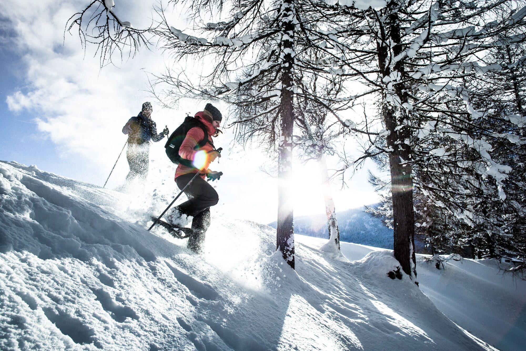 Mehrmals pro Woche geführte Schneeschuhwanderungen; Winterwandern, Langlaufen;