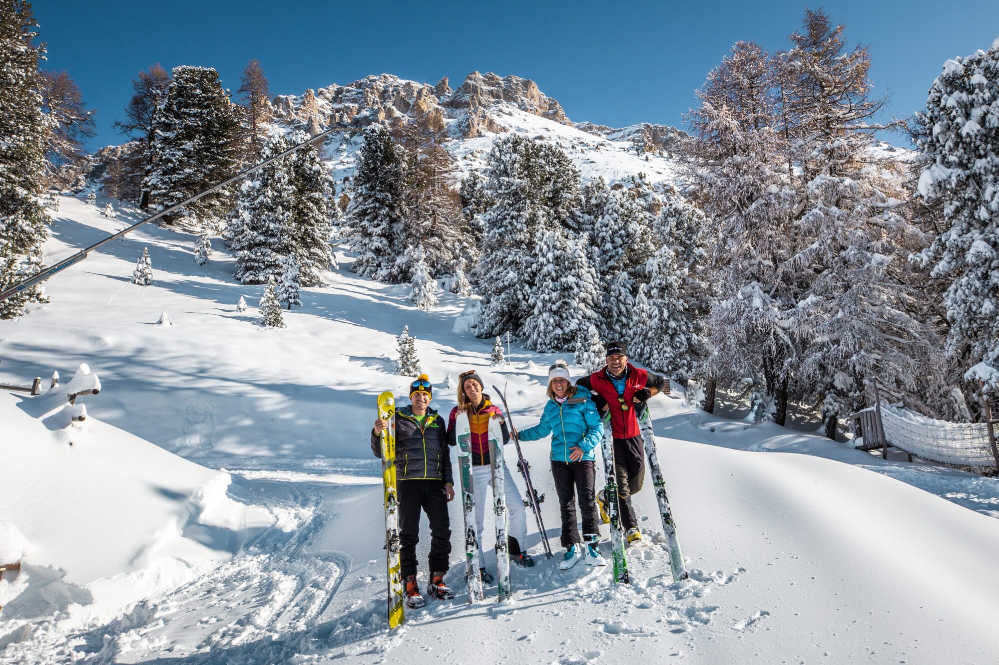Rodeln und Skifahren bei Tag und Nacht, Skitouren mit Bergführer, Schneeschuhwandern ab Hotel, Alpin-Skiausflüge mit Skibegleitung aus der Familie, Langlaufen am Lavazépass mit 50 km Loipen
