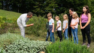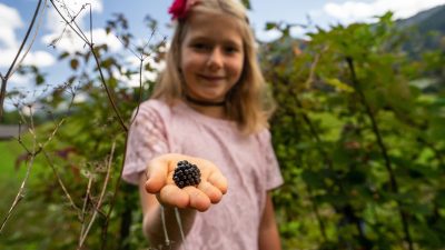Honig probieren, Strauchbeeren ernten und Gemüse mit in die Apartmentküche nehmen: Besonders freut Michael Tonder sich auf Besuch von Kindern, die im Dorf SCHÖNLEITN Urlaub machen. Ihnen ermöglicht er einen speziellen Einblick ins Bio-Hofleben und nimmt sie mit auf seinen Hof. Hier dürfen sie nach Herzenslust all die Leckereien probieren, die Michael hier kreiert, wie der nach Zitronenthymian duftende und schmeckende Honig.
