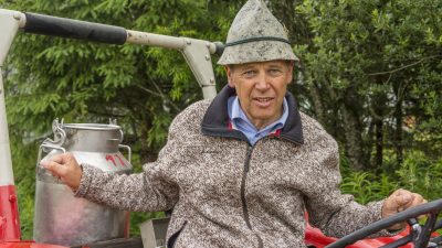 Küchenchef Alexander legt großen Wert darauf, dass seine Produkte aus der Region stammen – da muss er auch schon mal selbst los. Beim Schrofenbauern etwa, nur ein paar hundert Meter vom Hotel entfernt, bezieht er regelmäßig die Milch. Und ganz nebenbei ist es noch eine schöne Gelegenheit, eine Runde mit dem alten Trecker von Hotelchef Franz zu drehen.