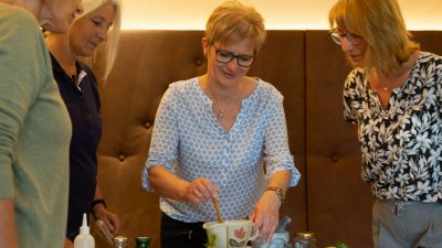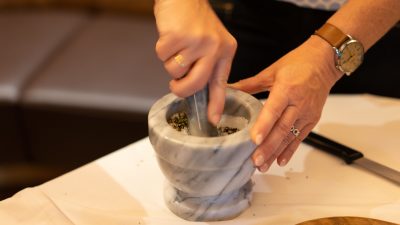 Für ein Bad mit entspannender Wirkung kennt Pia Ploner ebenfalls die richtigen Zutaten: Sie mörsert und vermischt dafür Wacholdernadeln und -beeren sowie Salz unter Zugabe ätherischen Wacholderöls zu einem wohlaromatisierten Badezusatz.