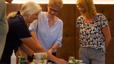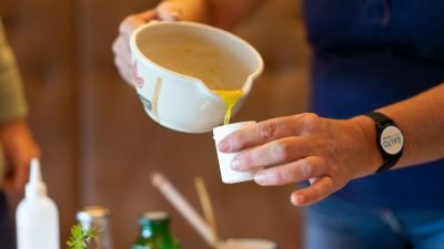 Das Rezept für eine Zaubersalbe? Pia Ploner, Kräuterexpertin im Hotel Trenker weiß, was man dafür braucht. Sie erntet dafür unter anderem Lärchenpech (das Harz der Lärche) und lässt es in warmem Olivenöl mehrere Stunden lang ziehen und über Nacht abkühlen. Schließlich wird alles zusammen mit Bienenwachs erwärmt und vermengt – fertig ist die Naturmedizin. Sie hilft, bei Husten oder Schnupfen freie Atemwege zu bekommen und wirkt bei Splittern im Finger als Zugsalbe.