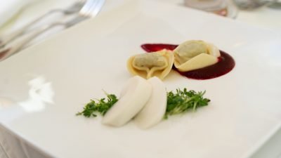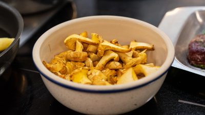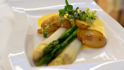 Schmeckt herrlich mit frischem Eferdinger Spargel und einer feinen Sauce aus roten und gelben Paprikaschoten. Oder – wie in unserem Video – mit rosa gebratenem Hirschrücken und frischen Eierschwammerln.