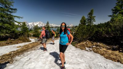 Eine besonders familienfreundliche Almwanderung ist die Höss-Runde, die auf 2000 Metern Höhe einen imposanten Ausblick auf die umliegende Bergkulisse mit dem Großen Priel eröffnet. Ausgangspunkt der Wanderung ist die Bergstation des Sessellifts “Höss-Express” auf 1858 Höhenmetern. Von dort ergibt sich bei gutem Wetter eine Sicht weit über 100 Kilometer. Die Tour führt auf das Hochplateau des Höss, in dessen Mitte sich der glasklare Schafkogel-Speichersee befindet.